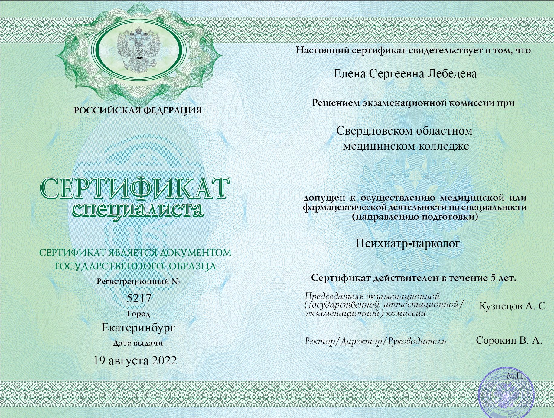 Елена Сергеевна Лебедева врач нарколог клиники доктора Стукаловой в Светлогорске